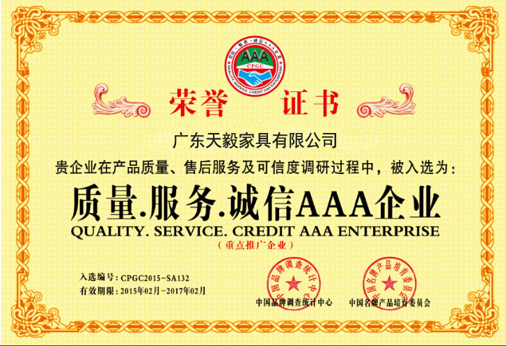 ??公司已經國家質量工商單位審核體系認證。我公司系廣州家具協會單位,在生產內部各個環節設立了檢驗關口,從原材料的進庫到產品的出倉,實行嚴格的檢驗,以達到質量最優...
